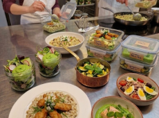 Atelier Batch Cooking – Cuisinez pour toute la semaine ! Salade primavera et crémeux de petits pois, Saumon poché, crème de petits pois et menthe, Cuisse de volaille crispy, risotto de fregola sarda, Poelée de courgettes au basilic, Salade de frégola aux olives, façon niçoise. Tarif : 84 € (1 portion de chaque plat + participation à l’atelier) + 21 € par portion supplémentaire (maximum 3 portions supplémentaires) pour emporter plus de plats et régaler toute la famille. Astuce écoresponsable : Merci d’apporter vos contenants pour emporter vos préparations dans les meilleures conditions et éviter le plastique jetable. -